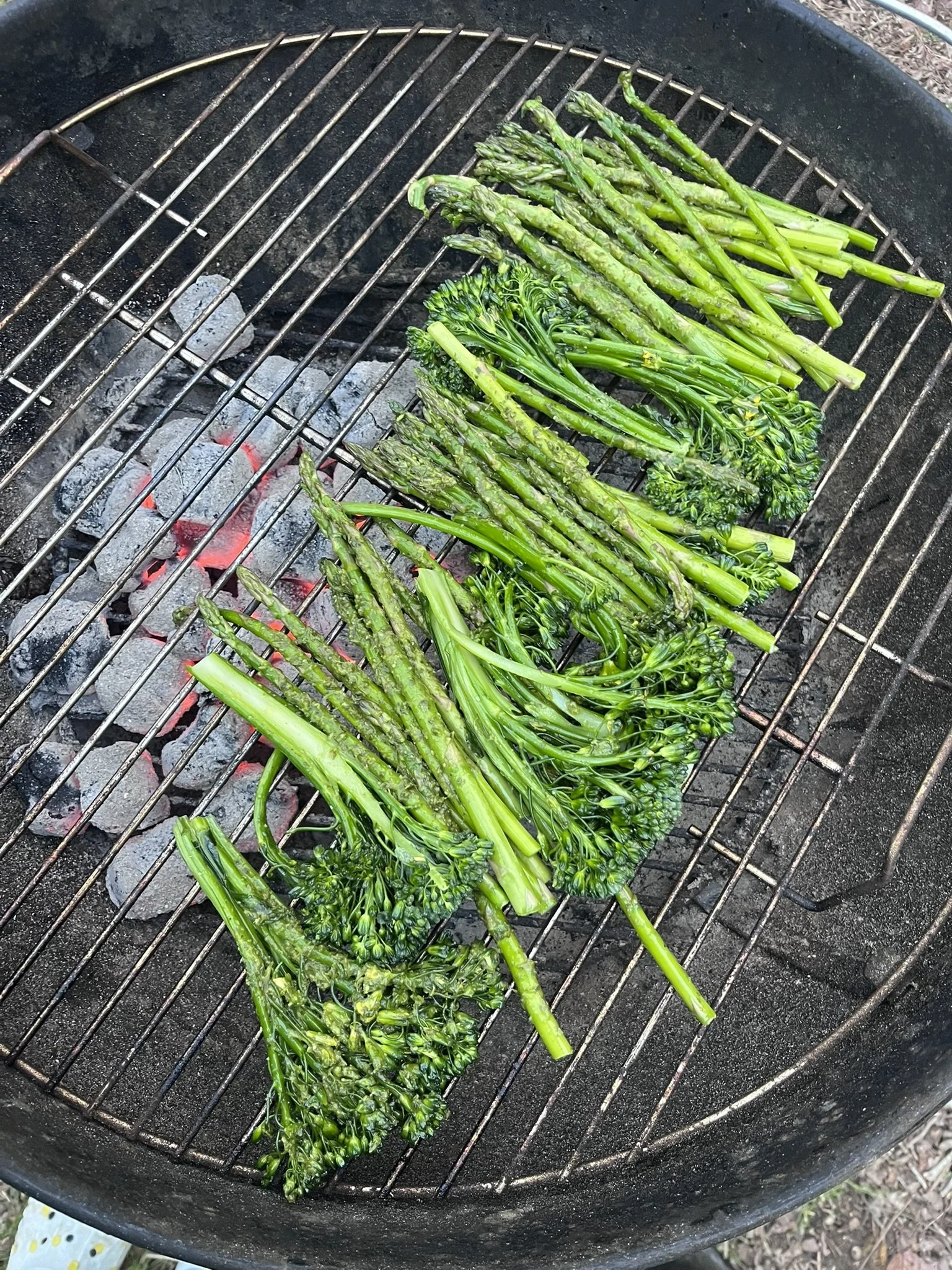 Grilled asparagus and broccolini tossed with chimichurri